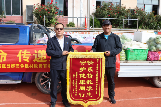 慰問儀式上,昌都高爭表示,企業(yè)將始終秉持“回饋社會、服務群眾”融入發(fā)展血脈,此次慰問既是對特教事業(yè)的實際支持,更是愛心與溫暖的傳遞,“服務雪域發(fā)展、造福高原群眾”的初心,此次慰問既是物資上的支持,更是精神上的鼓勵,希望這份溫暖能為孩子們的成長注入力量。學校負責人對愛心之舉深表感謝,稱這些貼合高原生活的物資承載著沉甸甸的關愛,將切實改善孩子們的生活條件,把每份善意轉化為教育動力,并送來一面錦旗,表示感謝。